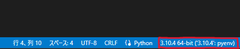 Python ファイルを開いた状態で、VSCode のウィンドウ右下ツールバーの赤枠をクリック